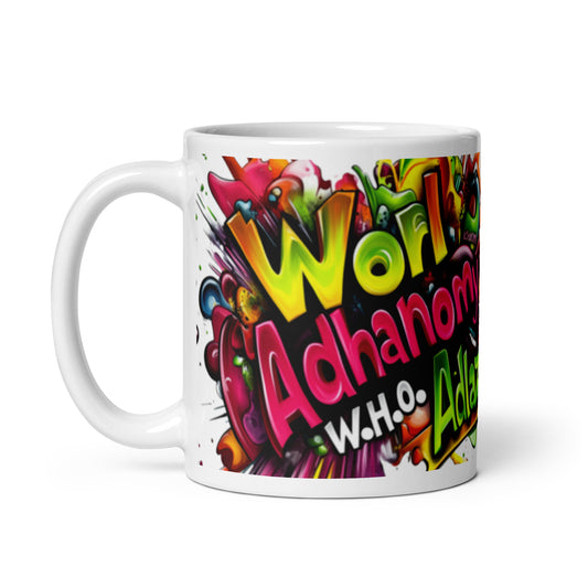 Worl Adhanomy Adlaz White glossy mug